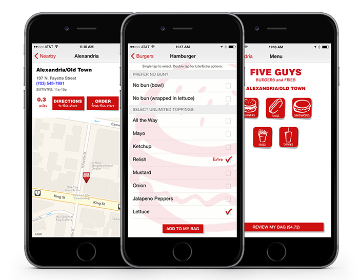 Following a smooth rollout and POS integration, Five Guys’ web and mobile ordering has resulted in a 25% higher average order size than phone orders. The order-ahead program makes the average 7 minute burger preparation time disappear so busy customers can Skip the Line® and enjoy fresh-made burgers, ready at just the right time. In the store, prepaid orders eliminate high phone order waste.